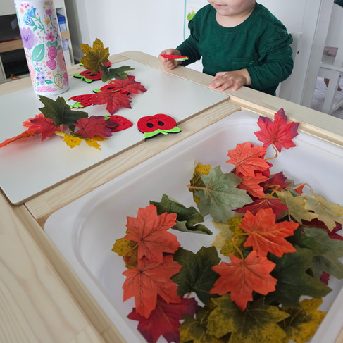 Budget Tip: Play materials don't have to be expensive! Repurpose measuring cups from your kitchen for the sensory table, or hunt around the house for baskets instead of buying new ones. Don't forget to visit the dollar store (leaves and felt fruit) or Target dollar Spot (easter eggs).